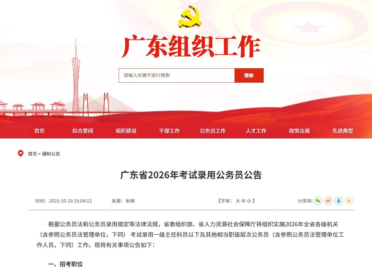 (三)本公告及报考相关要求的附件同时在广东组织工作网、广东省人力资源和社会保障厅网、广东人事考试网发布,并在各地级以上市公务员主管部门门户网站同步转发。本公告由省公务员主管部门负责解释。