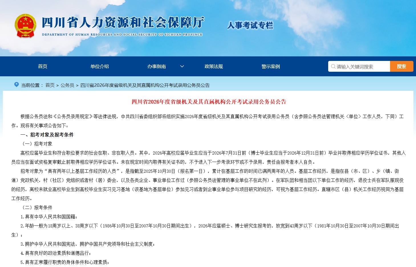 四川省2026年度省级机关及其直属机构公开考试录用公务员公告