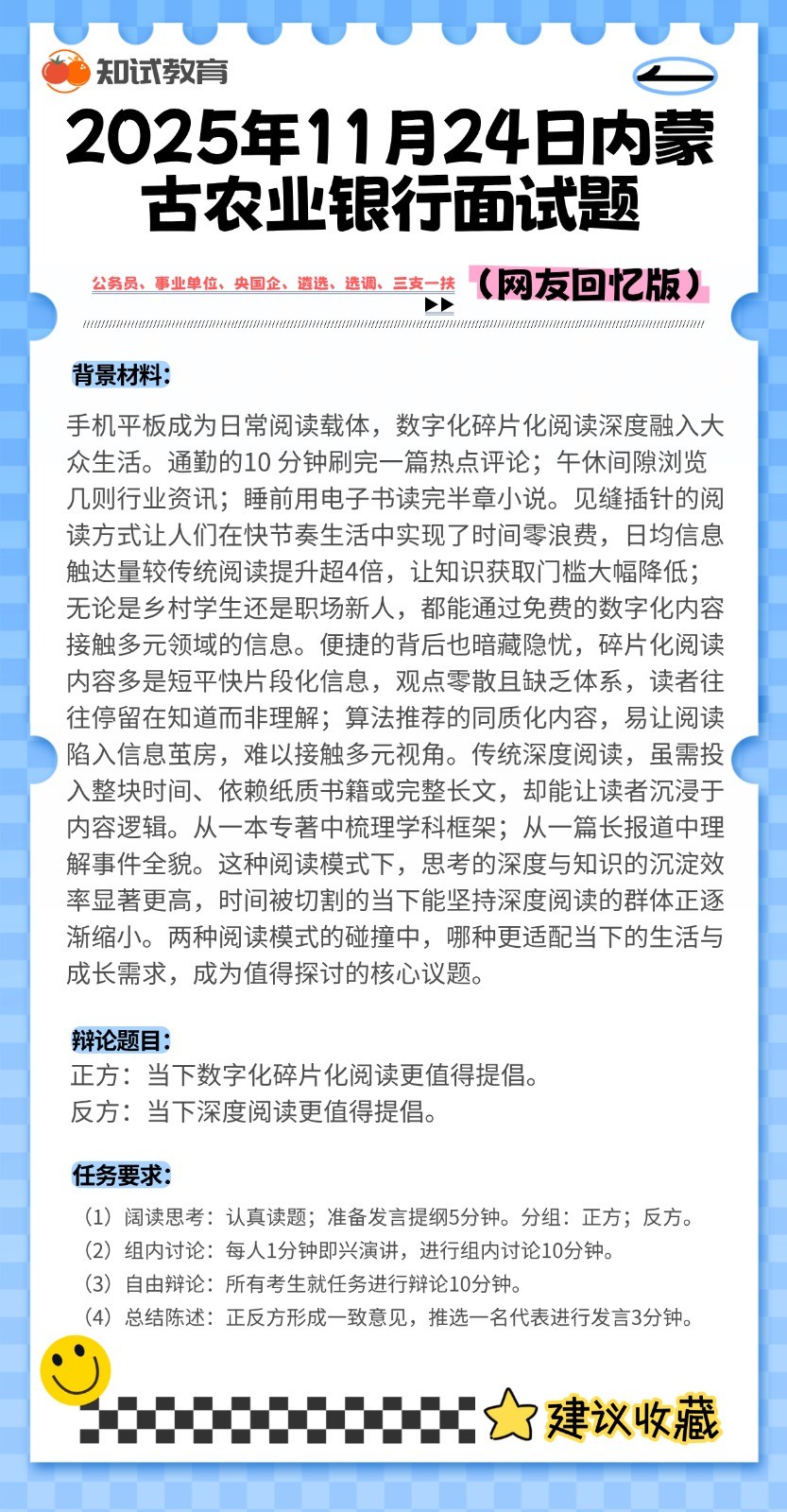 2025年11月22日-26日全国各省银行、遴选、选调、事业单位、人才引进试面真题(网友回忆版)