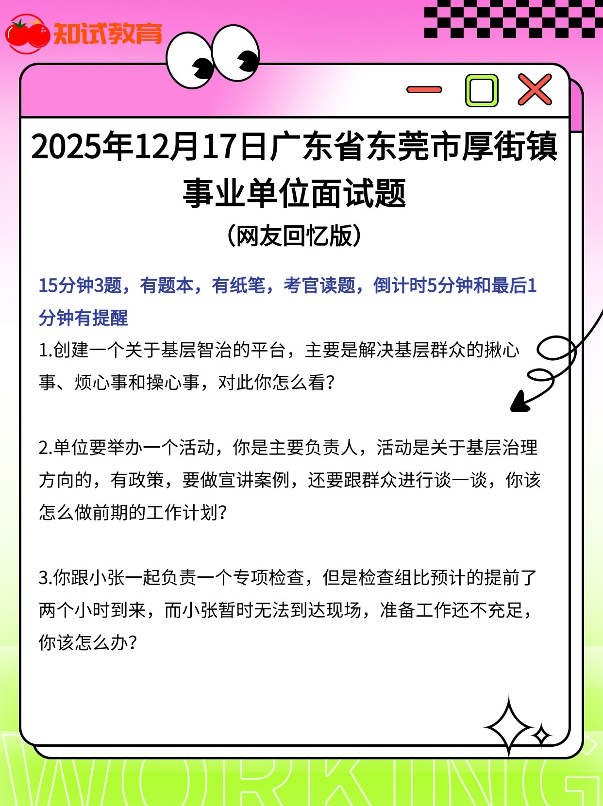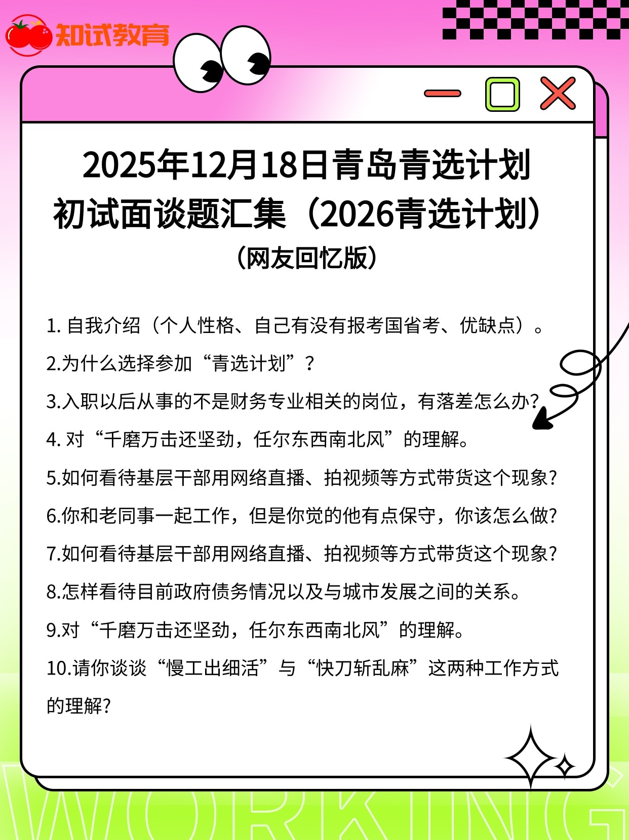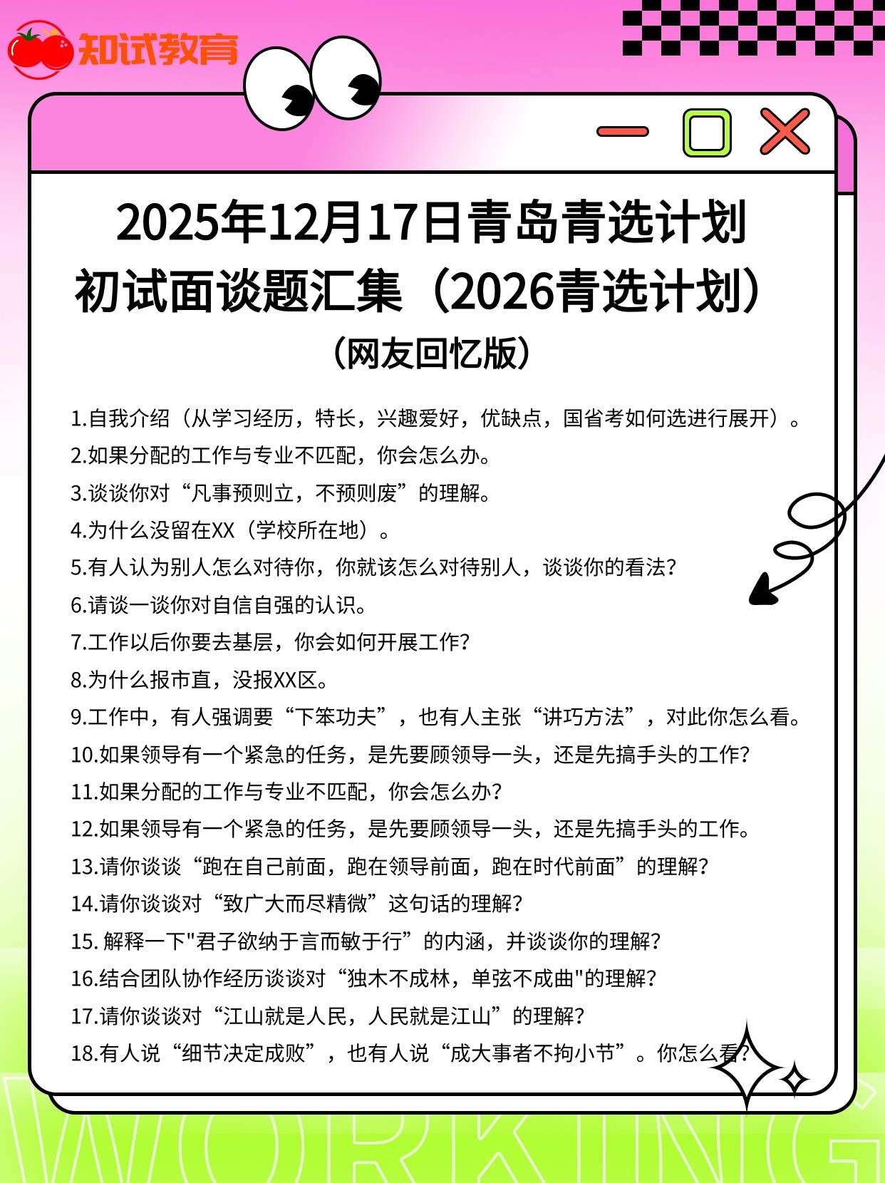 2025年12月16日-18日全国各省青选计划、事业单位等面试真题