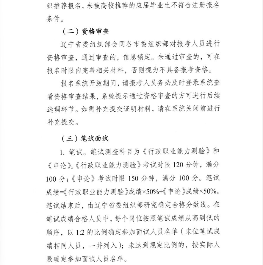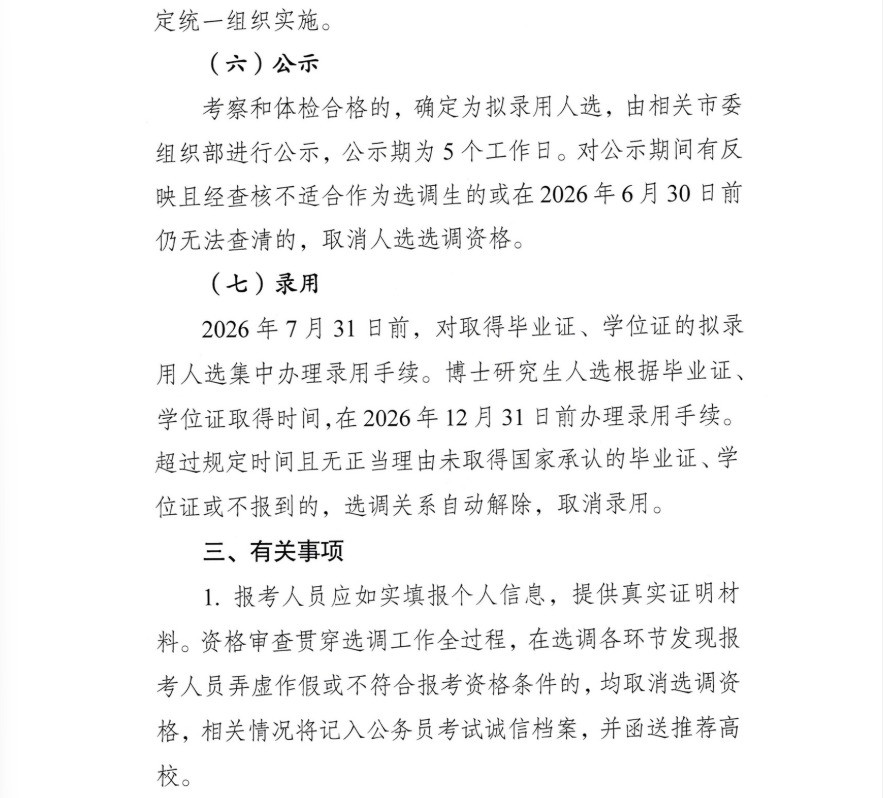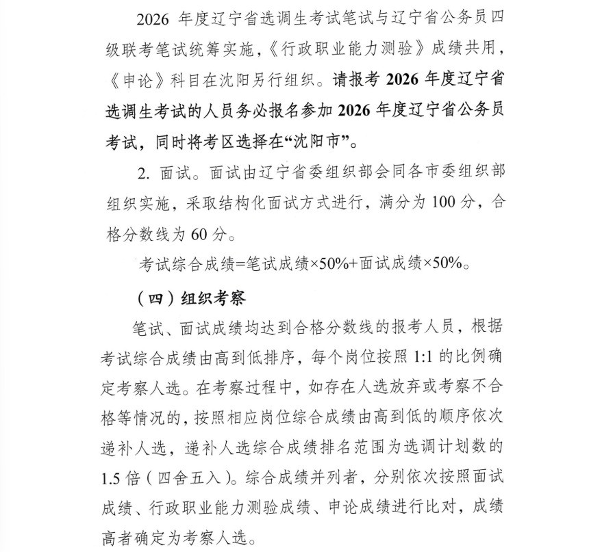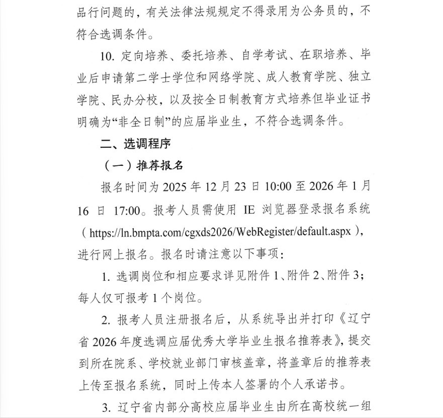 辽宁省2026年度选调应届优秀大学毕业生公告